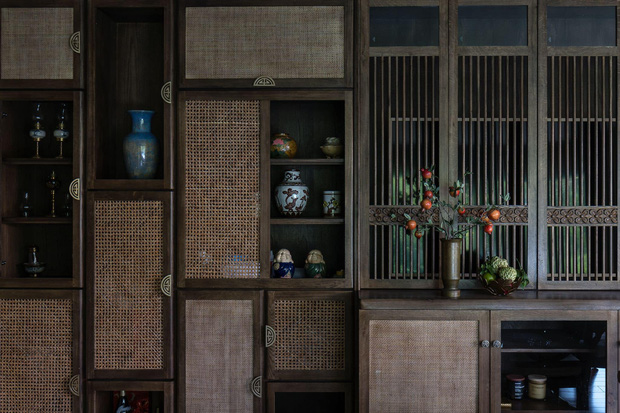 Nội thất trong ngôi nhà được thiết kế theo phong cách Indochine (Đông Dương), đây là sự kết hợp giữa niềm hoài cổ của truyền thống Á Đông và sự lãng mạng, hiện đại của kiến trúc Pháp. Với gam màu trung tính như vàng, nâu, trắng làm chủ đạo, tạo không khí thoải mái, nhẹ nhàng sau một ngày làm việc vất vả.