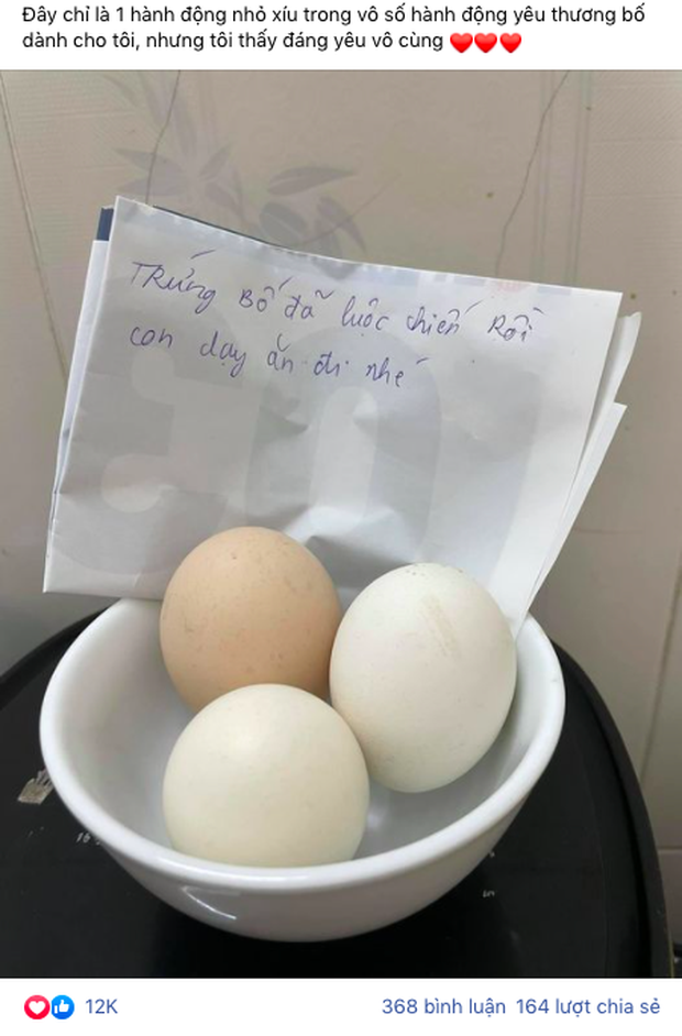 08/11/2021 16:12Ngủ dậy thấy bố luộc trứng cho ăn rồi để lại lời nhắn, cô con gái đọc xong mà ứa nước mắt vì thương