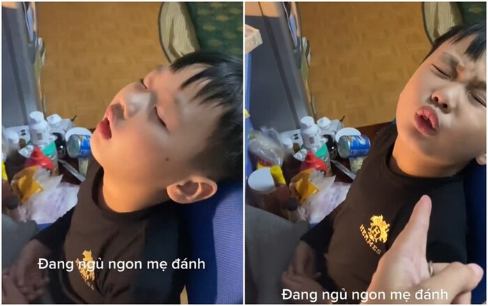 Phản ứng của cậu bé ngay lập tức khiến dân mạng vừa thương vừa buồn cười. Vì bị vỗ vào người bất ngờ, cậu bé giật mình tỉnh giấc, đồng thời, tỏ thái độ ngao ngán với mẹ rồi nói: "Úi giời, chán quá" kèm theo đó là gương mặt nhăn nhó.