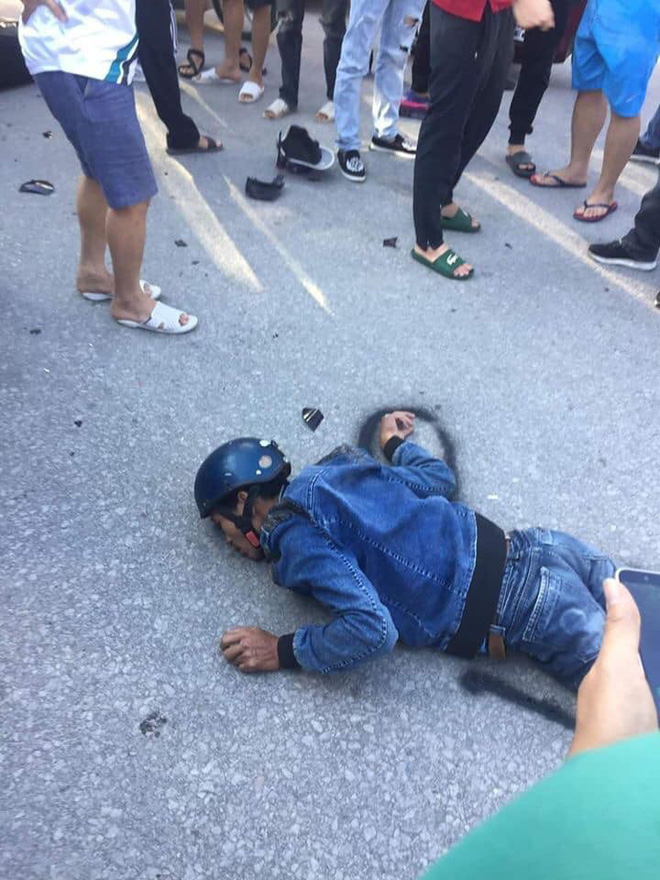 Theo đó, đi kèm với lời giới thiệu đầy tính tò mò này là hình ảnh ông chú nằm sõng soài trên mặt đất sau vụ tai nạn. Chiếc xe máy đã bị đâm nát khi đối đầu với xe tải.