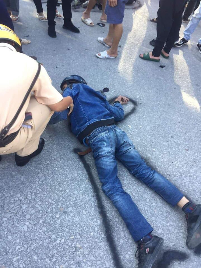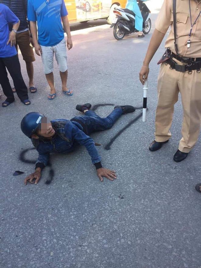 Người đàn ông ngay sau va chạm nằm bất động. Nhìn hiện trường vụ tai nạn nghiêm trọng nên có lẽ nhiều người cho rằng nạn nhân đã qua đời, người ta còn vẽ sơn quanh chỗ nạn nhân nằm.