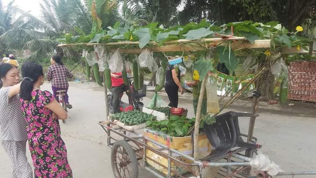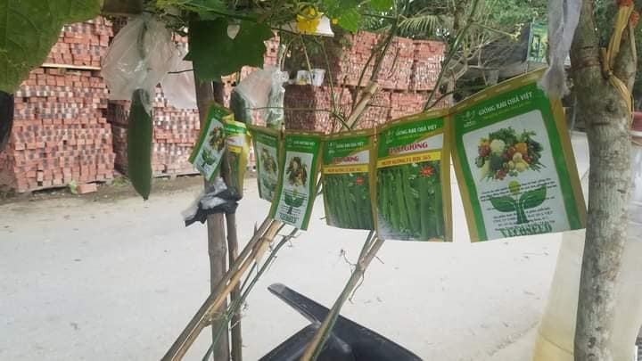 Người chia sẻ những bức hình về chiếc xe bán hạt giống này cho biết: "Một sự sáng tạo vô cùng thích thú trực quan luôn đến với khách hàng. Dàn mướp di động của chú Quýnh thôn Cổ Duy xã Quyết Tiến đã mang lại nhiều điều vui vẻ và chú bán được khá nhiều hàng. Chú bán dọc huyện trên chiếc xe kéo là dàn mướp xanh mướt và 2 khay xốp cây mướp giống".