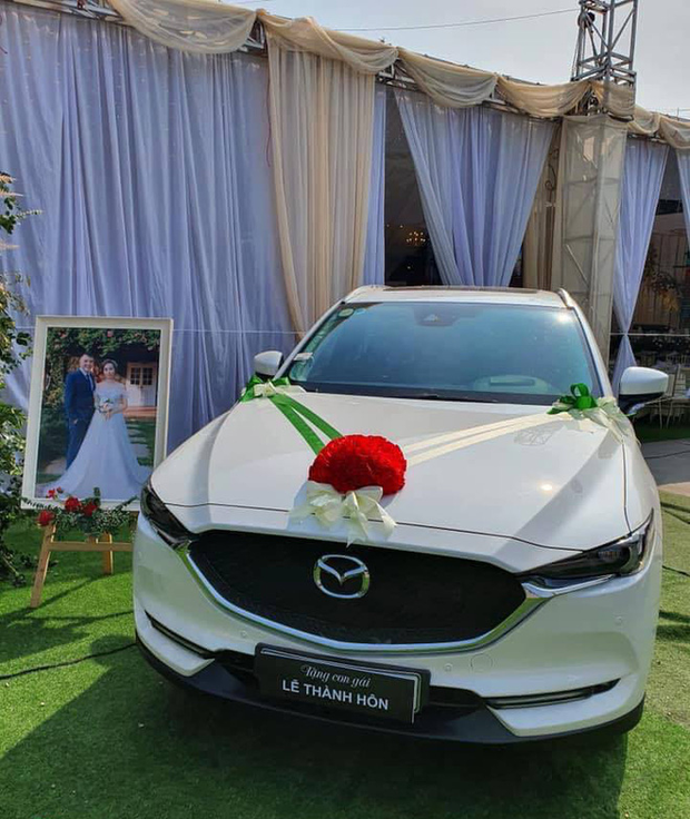 Cụ thể, vật phẩm gây chú ý trong hình ảnh chia sẻ này là chiếc ô tô hiệu Mazda màu trắng. Món quà giá trị trên khiến dân tình hết sức trầm trồ, chắc hẳn gia đình quyết định trưng chiếc xe ngay trước đám cưới là do mong muốn làm cho ngày vui thêm long trọng và hoành tráng.