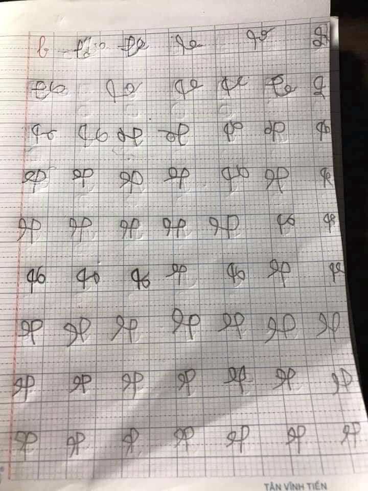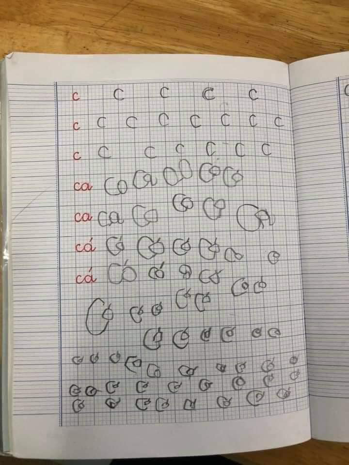 Mới đây, trên mạng xã hội, một người mẹ đã đăng tải những hình ảnh trong vở tập viết của con mình mới vào lớp 1 với dòng caption vừa hài hước vừa thể hiện sự "bất lực" của mình: "Con mình sắp vào lớp 1 mà chữ viết như này thì tương lai làm bác sĩ có rộng mở không nhỉ. Các bác khoe chữ các con cho em xem với chứ em sắp tụt huyết áp rồi..."