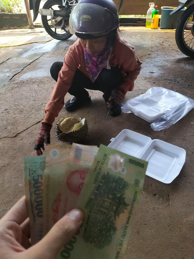 Chưa hết, cô bán trái cây còn hào phóng tặng chàng trai trẻ một trái sầu riêng vô cùng thơm ngon để khích lệ tinh thần anh.