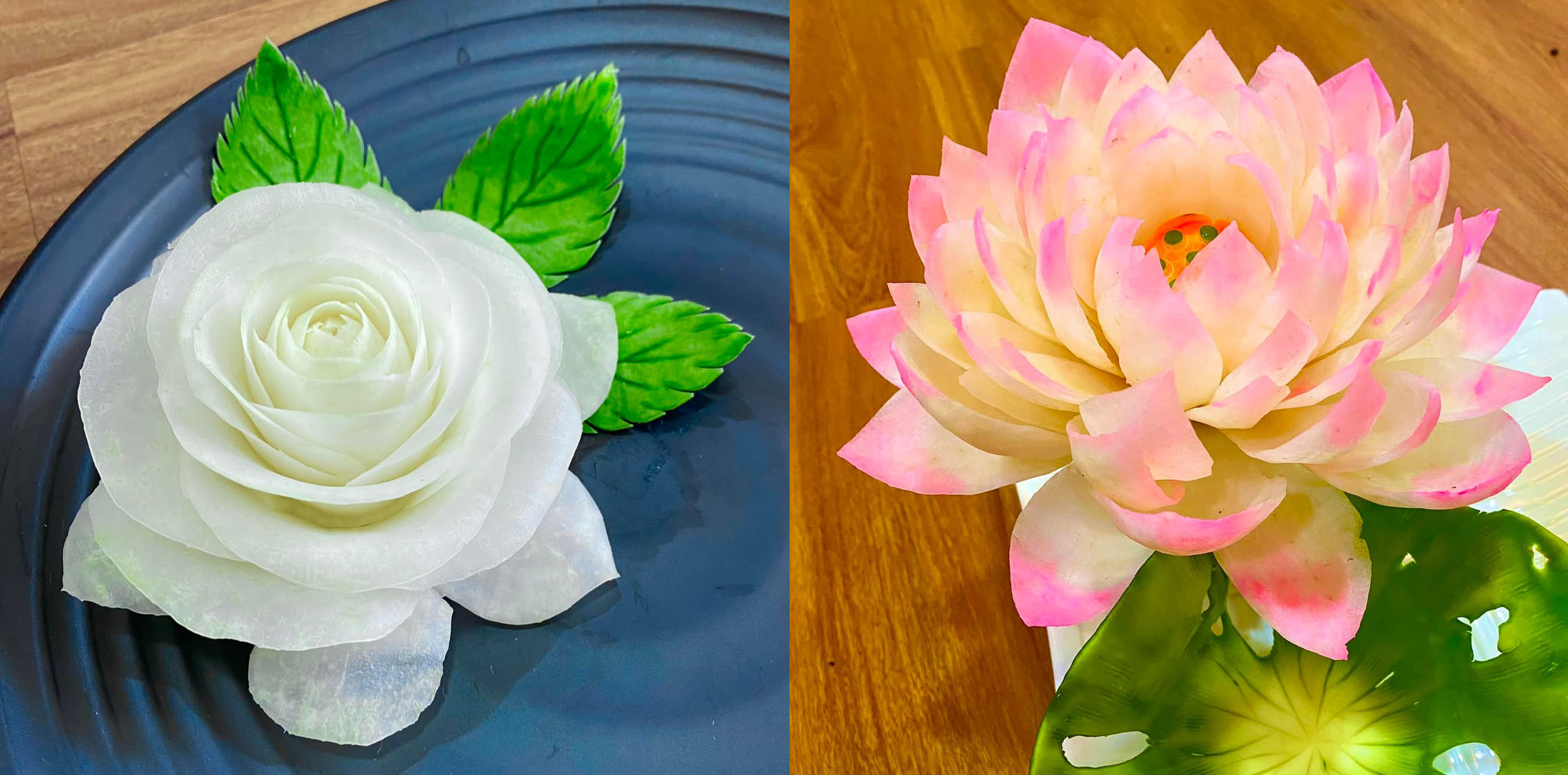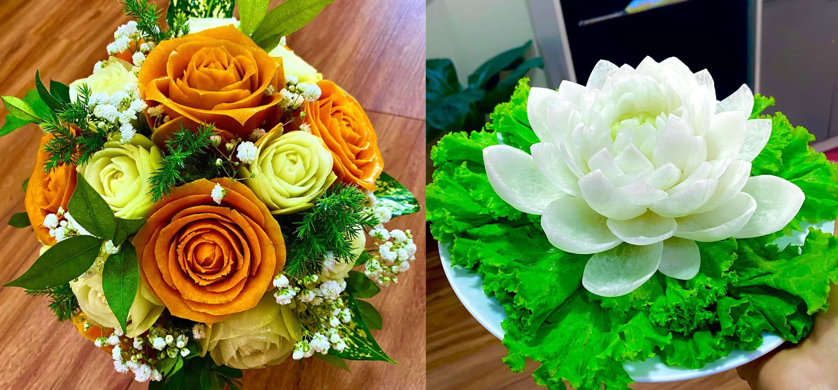 02/09/2022 14:36Người phụ nữ có tài tỉa hoa từ củ quả chân thật tới từng chi tiết