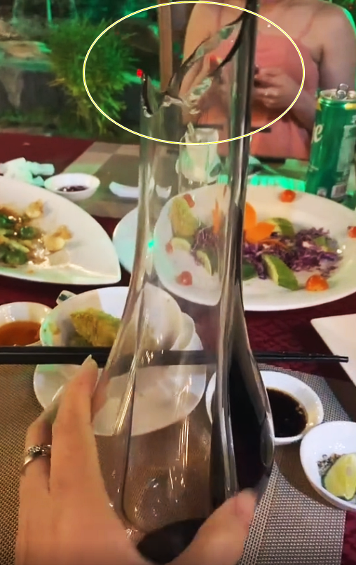 Nguyên do là bởi người phụ nữ này đã lỡ tay làm vỡ chiếc lọ thủy tinh khi ngồi ăn. Cứ tưởng đây là món đồ rẻ tiền nên cô ấy cũng sẵn sàng đền, nhưng khi nghe nhà hàng báo giá chiếc lọ thì người này... suýt ngất.