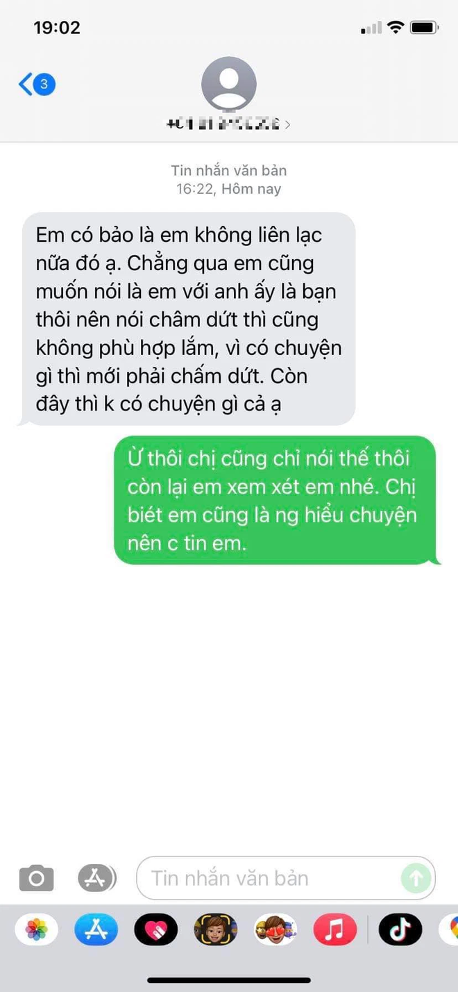 Bên cạnh đó, chị cũng tiết lộ trước đây, đã từng nhắn tin cảnh cáo "tiểu tam" nhưng cô bồ khẳng định cả hai chi là bạn bè và hứa sẽ cắt đứt liên lạc.