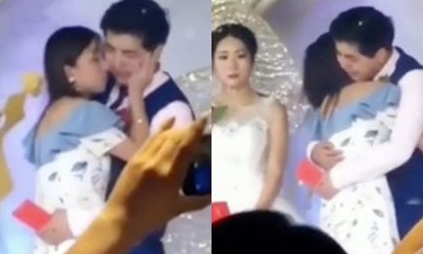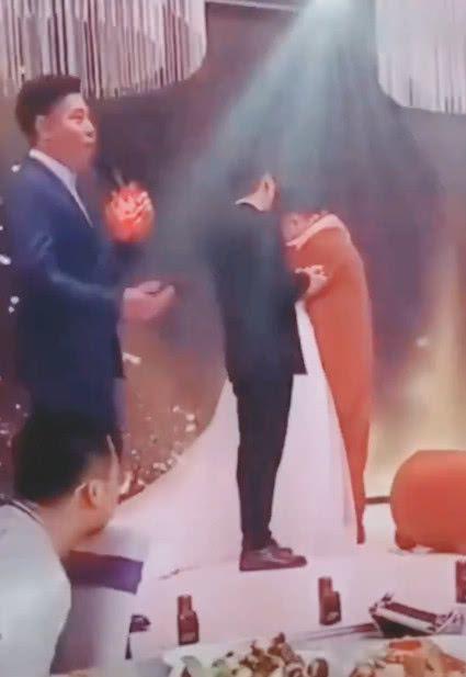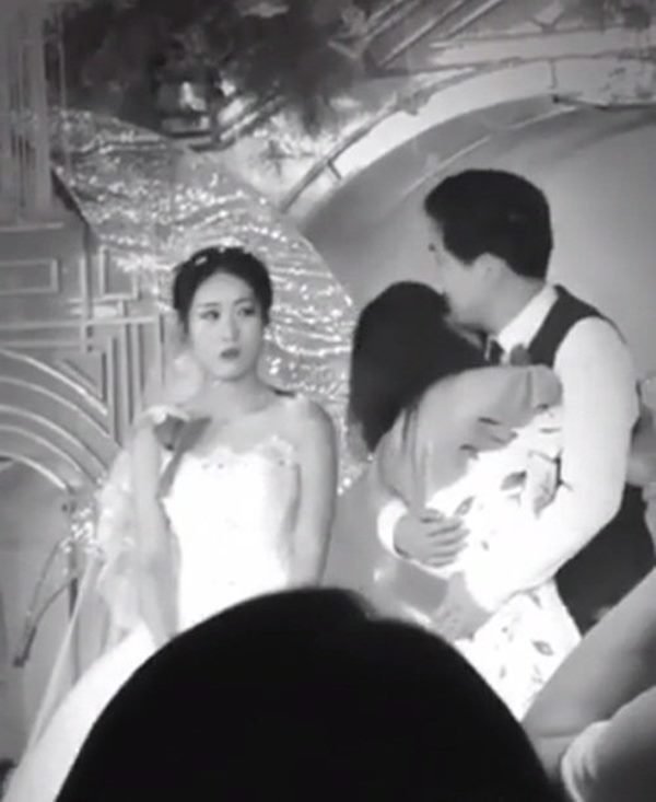 Mới đây, cư dân mạng Trung Quốc đã bàn tán xôn xao về một câu chuyện thật mà như đùa. Theo đó, tại một đám cưới, khi cô dâu và chú rể đang đứng làm lễ trên sân khấu, bỗng dưng một người phụ nữ từ đâu bước đến và ôm chầm lấy chú rể.