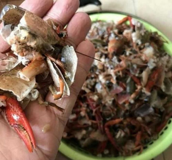 Khi đã chuẩn bị đầy đủ gia vị chế biến, người vợ liền mở máy giặt ra để xem 5 cân tôm đã được rửa sạch hay chưa. Nào ngờ những gì cô nhận được lại là số tôm bị vỡ nát, thảm hại tới mức thịt vỏ lẫn lộn không thể phân biệt được.