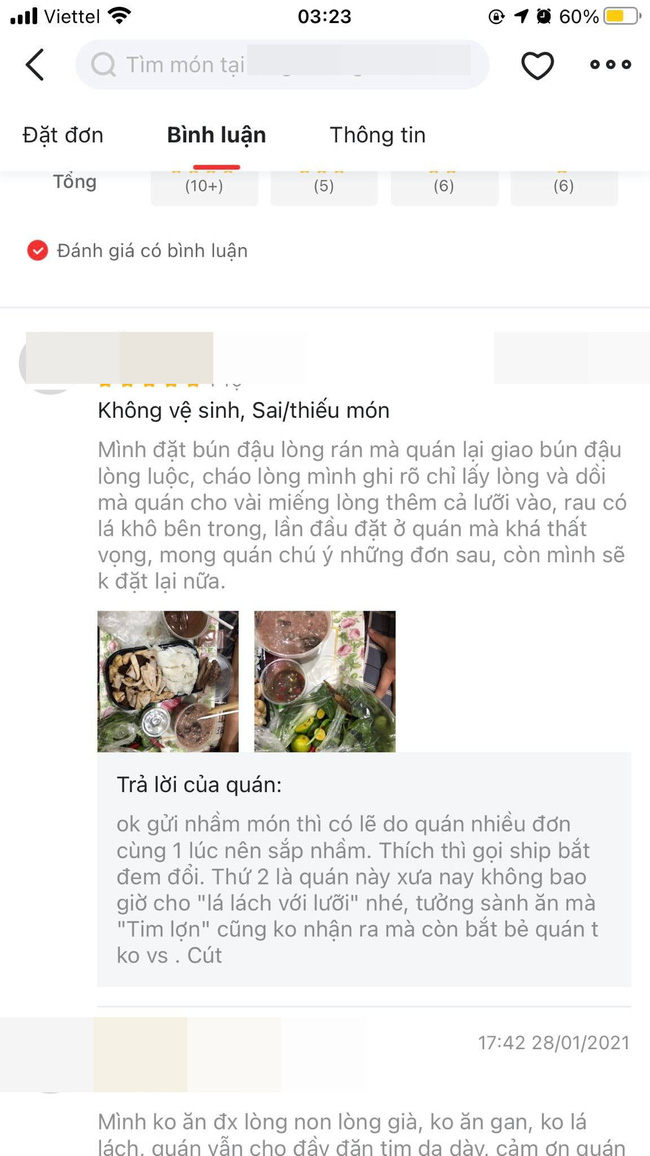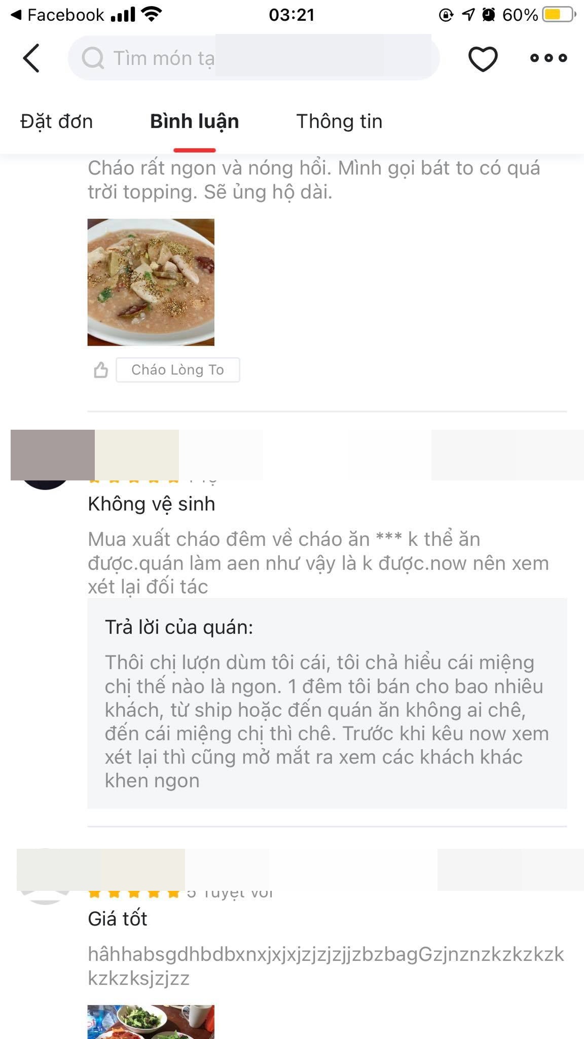 Mới đây, cư dân mạng có truyền tay nhau ảnh chụp những comment của khách hàng về chất lượng đồ ăn của một quán lòng. Tuy nhiên, điều khiến nhiều người bất ngờ là cách ăn nói "đốp chát" của người nhiều khả năng là chủ quán này.
