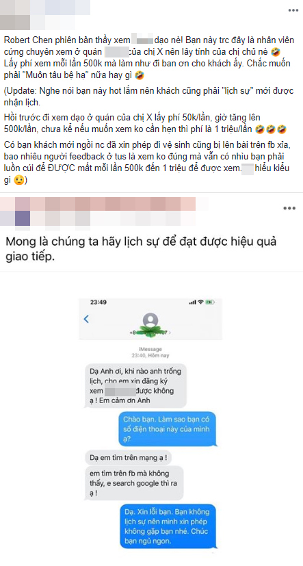 Không chỉ gặp phản ứng của nhiều người trên trang cá nhân có hơn 70.000 người theo dõi. Câu chuyện này còn được chia sẻ trên một số hội nhóm với thái độ bất bình và người chia sẻ còn cho biết sau khi nổi tiếng chàng thanh niên không những thay đổi về cách làm việc, ứng xử với khách mà giá cho mỗi lần xem bài cũng tăng gấp nhiều lần so với trước.
