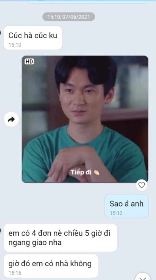 Anh shipper này thân với nhà mình lắm vì mình cũng bán hàng online, dùng GHTK, sinh nhật anh cũng mời mình, đám giỗ ngoại ảnh cũng mời, lần này cách ly nên ko bán buôn gì, lâu rồi mới nhắn tin nên ra cái màn nhắn tin buồn cười này đây.
