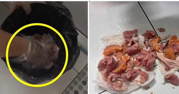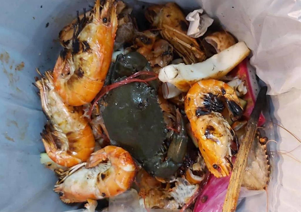 Kèm theo đó là bức ảnh được nhân viên chụp lại trong thùng rác ngay khi khách vừa rời đi. Có thể thấy, vị khách này đổ đi rất nhiều đồ ăn tươi ngon gồm tôm, cua, mực. Nhà hàng cho rằng thực khách này đã lấy quá nhiều đồ ăn nhưng không thể ăn hết và sợ bị tính tiền phạt đồ ăn thừa nên đã đổ vào thùng rác.