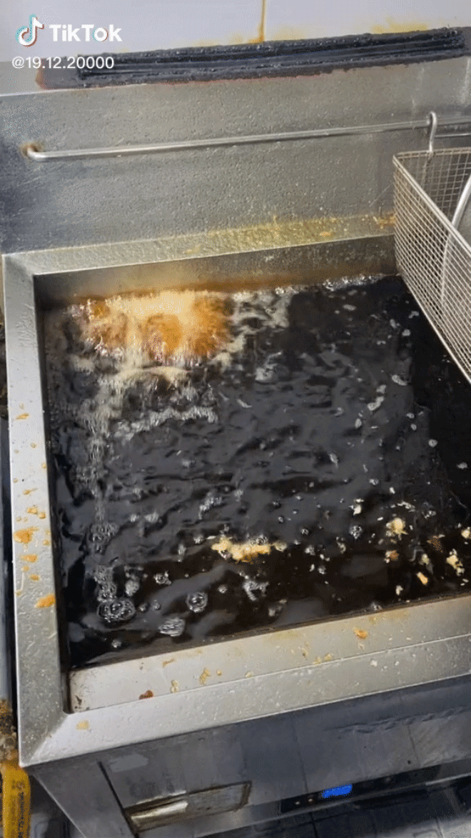 Mới đây, một anh chàng làm nhân viên tại quán ăn đã "phơi bày sự thật" về chính nơi mình làm việc. Trong clip anh chàng này đăng tải, chảo dầu chiên gà có màu tối sậm và đáng sợ hơn chính là nội dung được anh chàng này chia sẻ: "6 ngày rồi. Mai mới được thay. Từ lúc đến quán đến giờ không dám ăn đồ chiên".