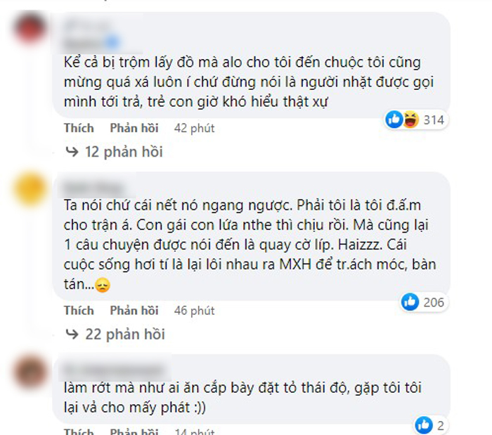 Thái độ của chủ nhân chiếc túi khiến nhiều người cảm thấy ngán ngẩm. Thậm chí bảo nhau lần sau đi đường có nhỡ nhặt được đồ ai đó làm rơi thì cứ vác lên đồn công an cho xong chuyện kẻo lại làm ơn mắc oán.
