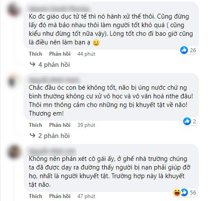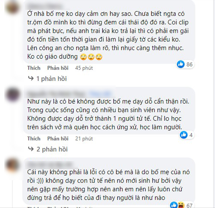 Người đàn ông nhặt được chiếc túi đã dành ra vài phút để nhắc nhở cô bé về thái độ của mình, tuy nhiên cô bé vẫn rất căng thẳng và cả khi anh bức xúc muốn đưa lên công an giải quyết thì cô bé cũng thét lên: "Đi lên công an đi". Đương nhiên cũng không có bất cứ lời cảm ơn nào được phát ra.