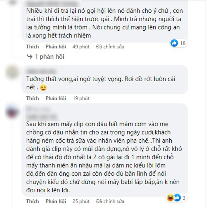 Sau khi hai nữ sinh di chuyển tới địa điểm anh đã hẹn để lấy lại đồ, trong khi người bạn của nữ sinh làm rơi đồ khá nhẹ nhàng xin lại chiếc túi và nói đỡ rằng bạn mình do rơi đồ nên hơi mất bình tĩnh, thì chủ nhân lại rất căng thẳng, nhăn nhó và chống nạnh, chỉ tay nói lại khi thấy có người ghi hình mình.