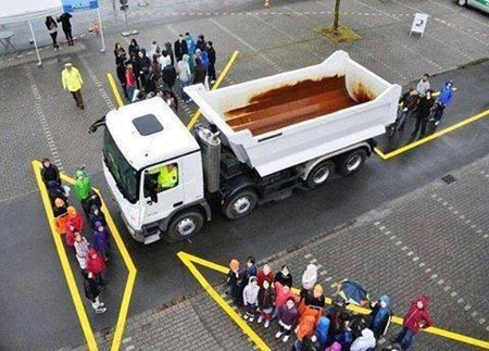 - Sau đó, hãy dạy trẻ không nên đi vào những vùng được đánh dấu và giải thích cho chúng biết rằng mặc dù chúng có thể nhìn thấy chiếc xe nhưng người lái xe có thể không thể nhìn thấy chúng.