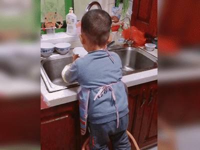 Trong đoạn clip, nhân vật chính là một cậu bé nhỏ xíu, khoảng 4 - 5 tuổi đang say sưa rửa bát. Dù đang đứng trên ghế để có thể với tay đến bồn rửa bát nhưng em bé vẫn không hề cảm thấy khó khăn mà còn rửa vô cùng thành thạo. Không chỉ có thế, cậu bé còn được đeo tạp dề và đeo bao tay để ngăn không bị ướt áo trông rất chỉn chu.