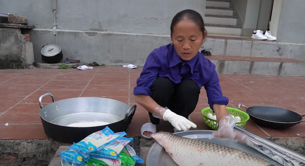 Mới đây, bà Tân lại khiến netizen trầm trồ tung clip làm món cá trắm khổng lồ nướng muối tuyết. Dân mạng vừa nhìn tiêu đề đã không hiểu rốt cuộc "muối tuyết" ở đây là vì, hoá ra bà thủ sẵn công thức cả!