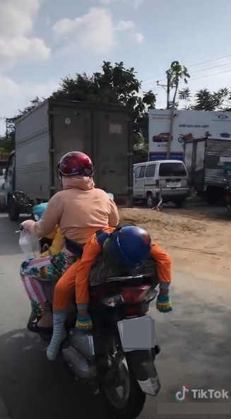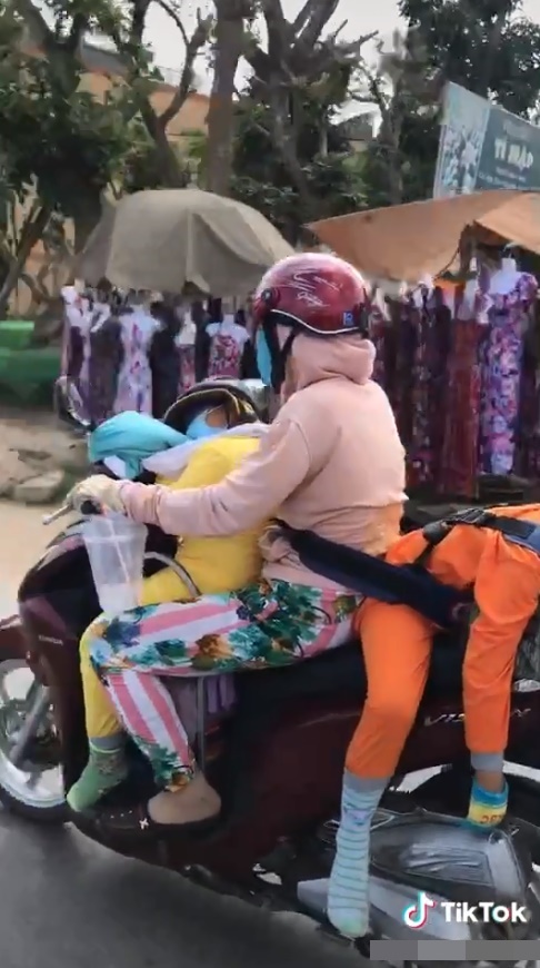 Mới đây, mạng xã hội Tiktok có chia sẻ đoạn clip ghi lại hình ảnh một bà mẹ chở hai người con trên xe máy. Điều đáng nói là trong khi người mẹ đang phi như bay trên đường thì hai cậu con trai lại thi nhau ngủ với kiểu tư thế vô cùng khó đỡ. Nhìn vào đây, ngoài những suy nghĩ là trông cậu bé khá buồn cười thì còn rất nhiều người lo cho sự an nguy của mấy mẹ con.