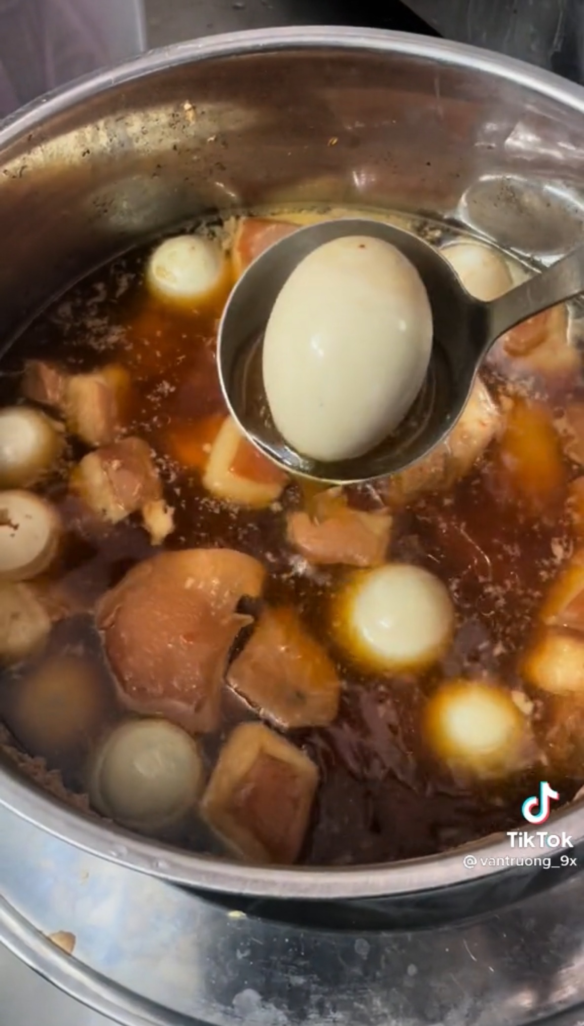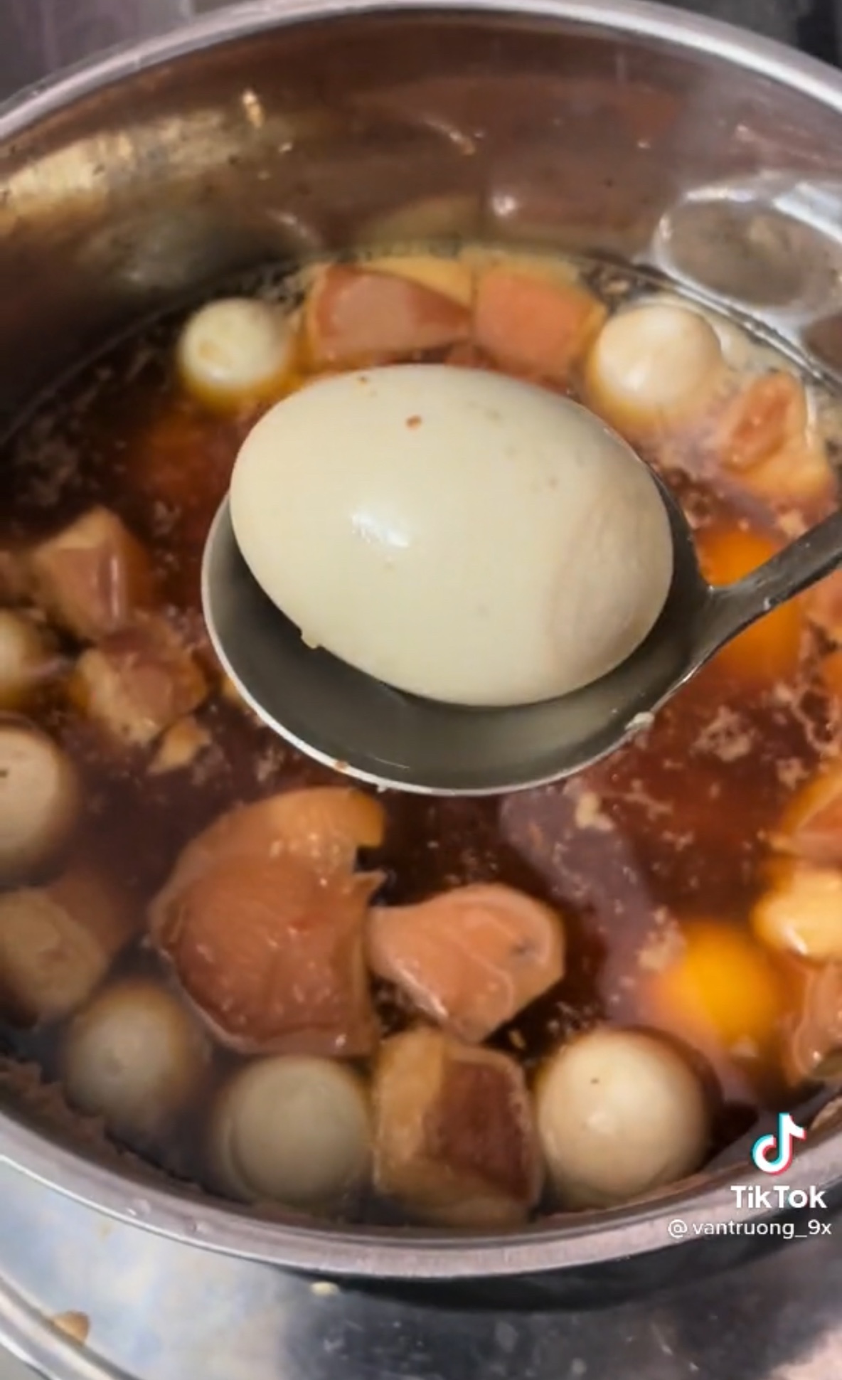 | Nồi trứng kho thịt để nguyên vỏ khiến nhiều người tranh luận. |