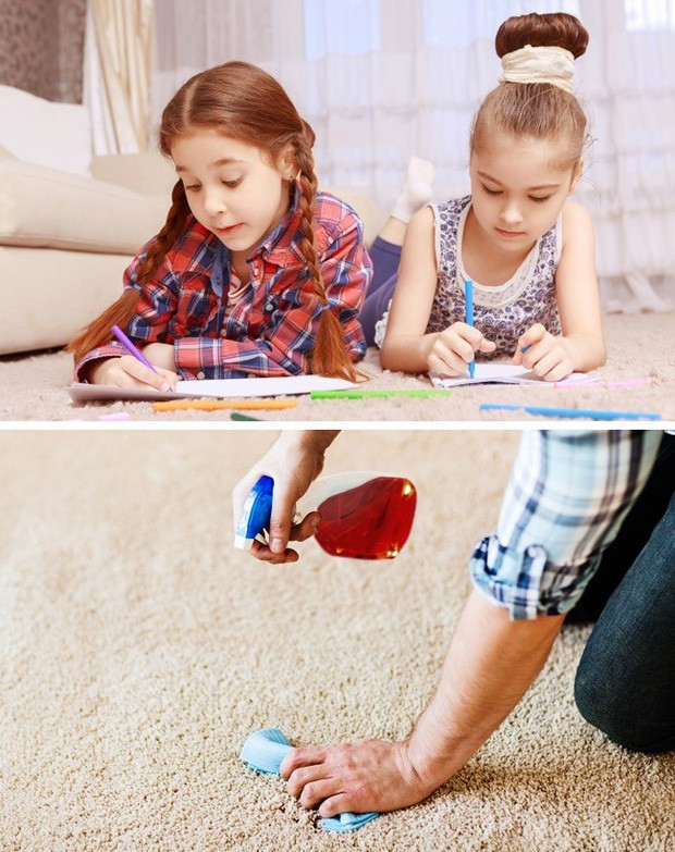 Chẳng may gặp phải vài đứa trẻ con tinh nghịch đến nhà chơi và cầm bút mực màu dạ vẽ linh tinh ra sàn và phòng, đừng vội vàng mắng mỏ chúng mà hãy bình tĩnh, kiếm một chút nước Coca thấm vào những phần dính mực đó, có thể trộn thêm chút xà phòng tẩy nhẹ và lau đi dễ dàng là xong.