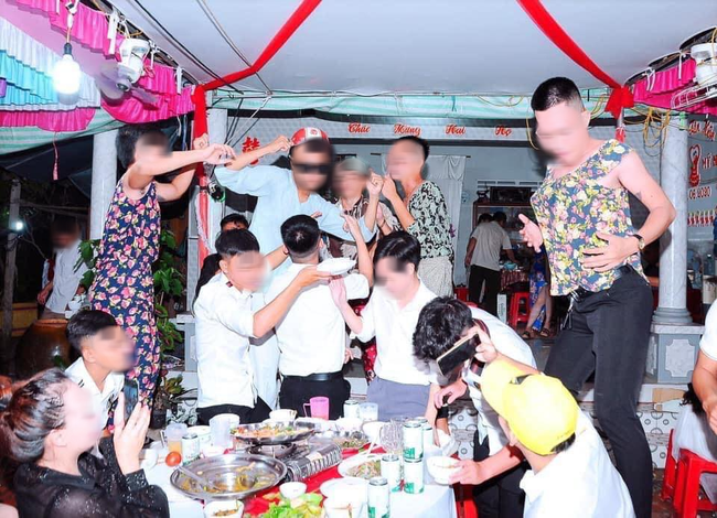 Đơn cử như trường hợp dưới đây, một tài khoản mạng xã hội có nickname N.T đã đăng tải hình ảnh nhóm bạn thân mặc nguyên... bộ đồ ngủ đi dự đám cưới của bạn mình. Điều đáng nói, đó lại toàn là các... chàng trai.