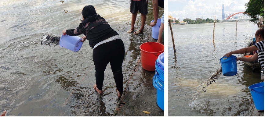 - Mọi người đều hiểu sai phóng sinh rồi. Việc làm đó trong những ngày này có nghĩa là ra chợ, hoặc ra đường, thấy có con cá, con gà, con vịt nào sắp bị cắt tiết hay mổ thì mua rồi mang đi thả. Đó mới là phóng sinh, chứ không phải mua một túi nilon cá rồi ném nguyên cả bịch xuống sông đâu!