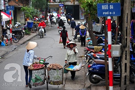 Dưới những mái hiên tập thể cũ kỹ, rất đặc trưng Hà Nội, trong một ngách nhỏ của phố 8/3, người dân đi chợ rất thong thả, tiếng cười nói rộn ràng khắp nơi, và quen thuộc nhất là lời mặc cả của các bà, các mẹ. Một cảnh tượng rất đỗi bình dị, đời thường, khiến ta thấy thư thái khó tả lúc ban mai |