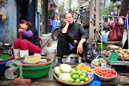 Ở một con ngõ khác trên phố 8/3, chị hàng cá cười tươi rói cạnh cô bán rau. Chợ đã dần ngả về trưa, mẹt rau củ của cô cũng vơi đi nhiều, nên cô đợi bán nốt rồi dọn hàng, chiều về đi bán ở chợ khác. |