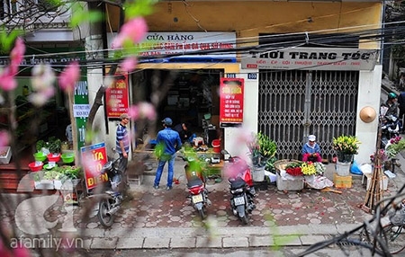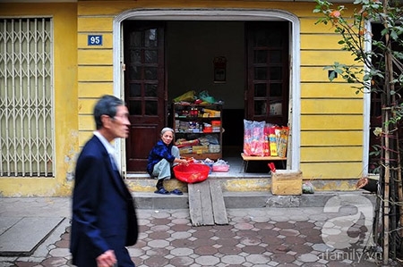 Trước cửa căn nhà số 95 là tủ hàng bán đồ lễ thờ, vàng hương giản dị, gọn gàng của một cụ bà. Ngày mai là mùng 1 tháng 2 Âm lịch. |