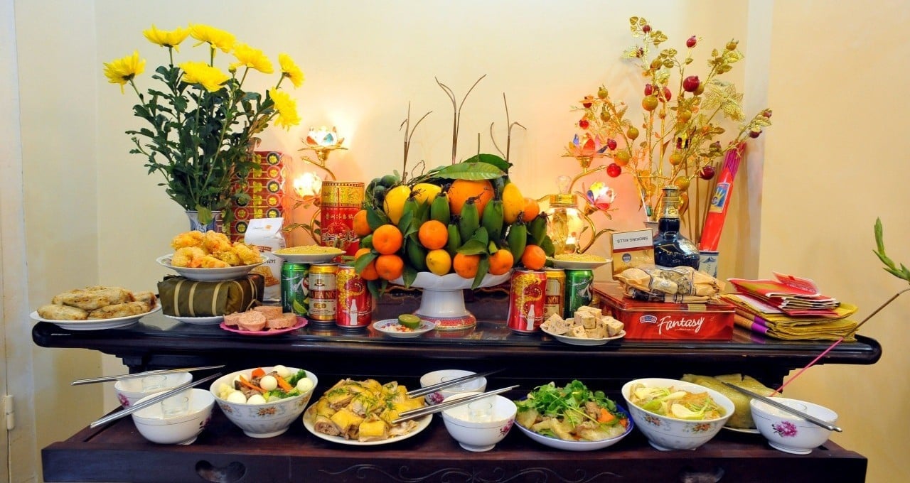 Mâm cỗ Tất niên thường được chuẩn bị đầy đủ với những món ăn truyền thống như gà luộc, bánh chưng hoặc bánh tét, xôi, giò, chả… Không chỉ mang ý nghĩa dâng cúng, đây còn là bữa cơm sum họp, nơi các thành viên trong gia đình quây quần bên nhau sau một năm bận rộn.
