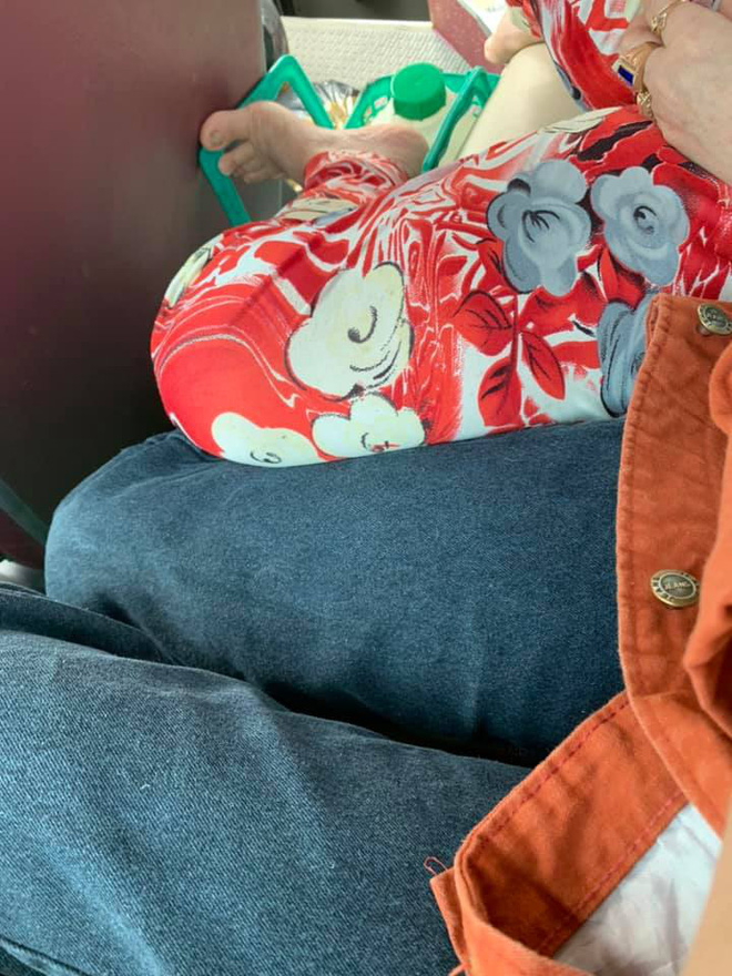 Nhưng lúc mình mỏi chân rút ra bác lại qua qua lườm mình, lại còn gác chân lên ghế trước (như ảnh) và lấn sang ghế mình luôn.