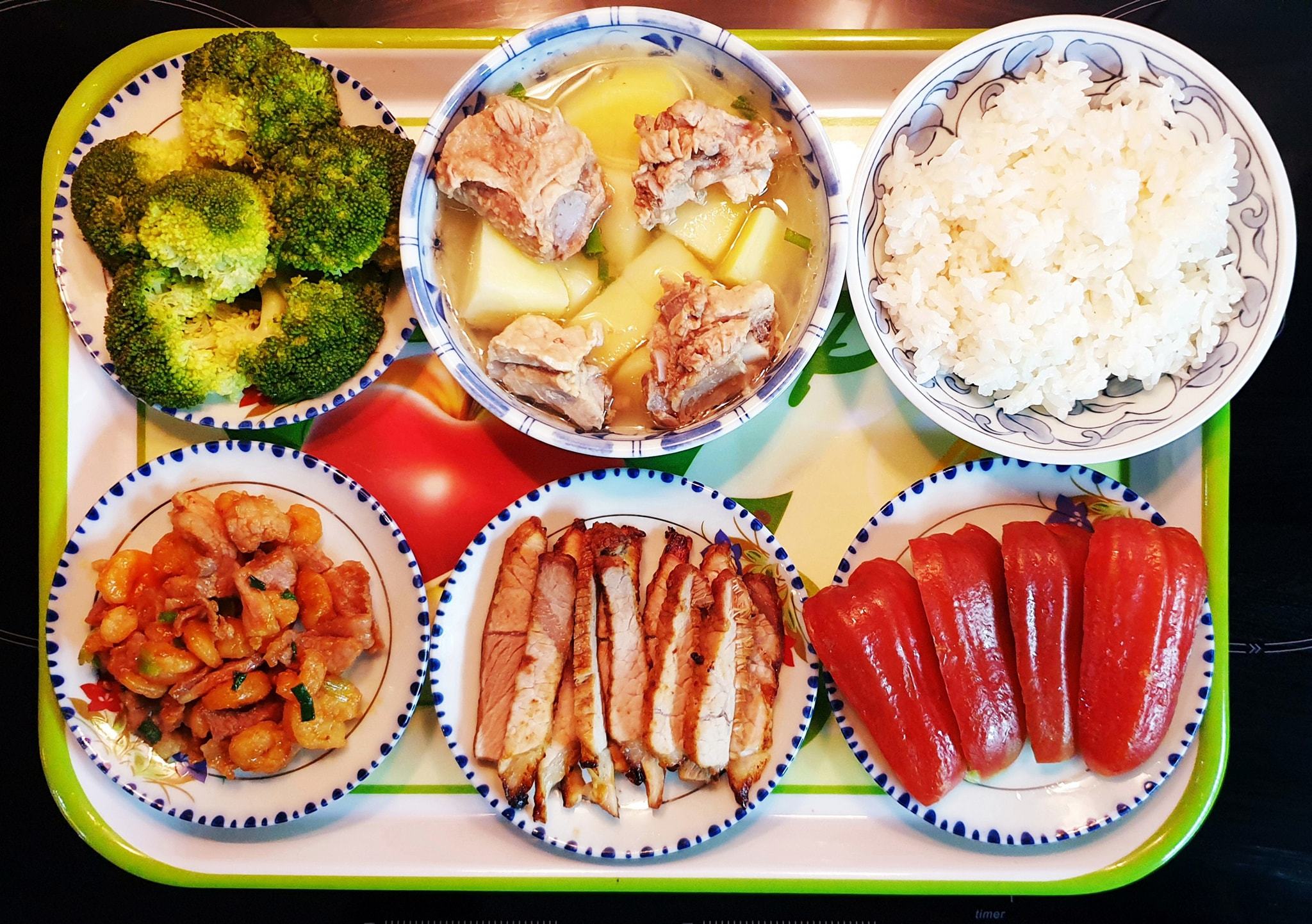 Anh thường lên thực đơn từ ngày hôm trước. Đầu giờ sáng hôm sau, anh sơ chế qua thức ăn để nấu cho từng bữa. Mỗi bữa anh mất trung bình từ 1 tiếng đến 1,5 tiếng nấu nướng.