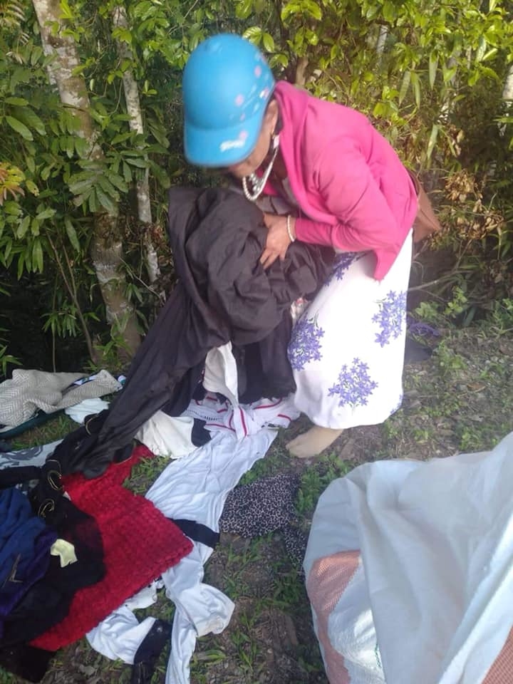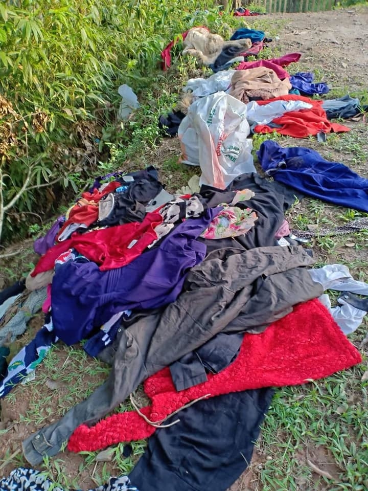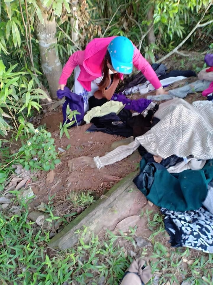 Tình cờ tôi có việc riêng nên đi theo họ, đi được 4km đến chỗ vắng thì thấy họ dừng lại lọc lấy những cái đẹp nhất, sau đó vứt vào bụi cây hoặc xuống suối. Họ đi rồi, tôi lại gần thì thấy, ôi quá nhiều quần áo cũ vứt lại... thoáng choáng váng, cảm giác cực kì thất vọng - bao công sức đêm hôm nhận đồ, mưa gió.