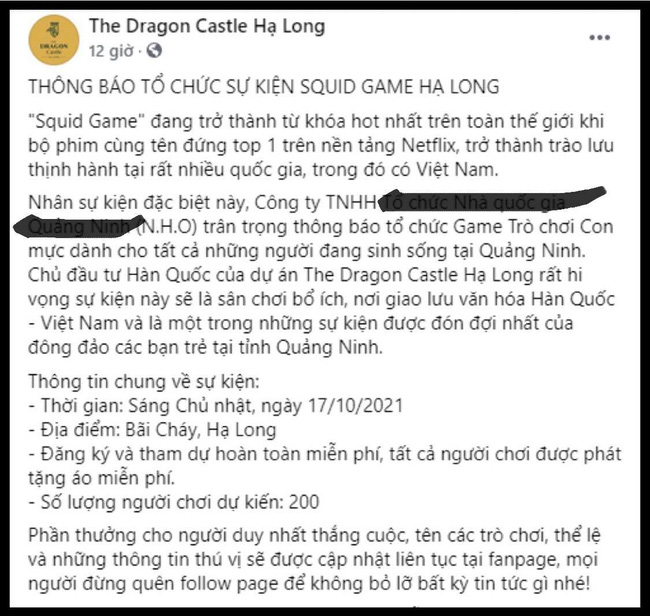 Trước đó, Fanpage của ban tổ chức đã đăng tải thông tin về sự kiện Squid Game diễn ra tại Hạ Long. Được biết, sự kiện đang diễn ra trong hôm nay (17/10) tại địa Bãi Cháy, Hạ Long. Tất cả người chơi được phát tặng áo miễn phí.