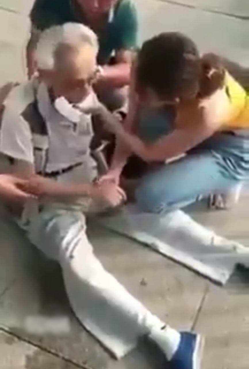 Mọi người hồi hộp lo lắng theo dõi màn cấp cứu bất đắc dĩ giữa đường. Cô gái trẻ liên tục ấn lồng ngực cụ ông suốt hơn 3 phút, bất ngờ nạn nhân đã tỉnh lại trong sự vui mừng của mọi người xung quanh. Cô gái nhanh chóng cùng vài người đỡ ông cụ ngồi dậy, theo dõi phản ứng của ông cụ và nhẹ nhàng hỏi thăm ông.