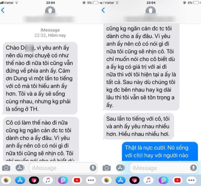 Đi kèm với đó, chị D.N không quên chụp lại đoạn tin nhắn chửi bới, thách thức của cô nhân tình trơ trẽn.