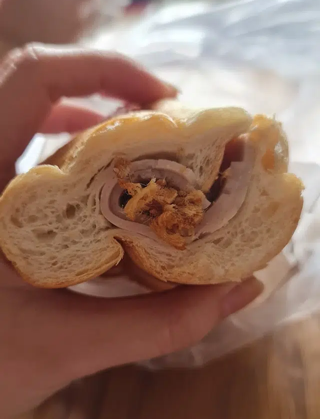 Những lời mô tả đầy sinh động của chủ nhân chiếc bánh khiến dân mạng cười rơi lệ. Soi bức ảnh chụp nhân bánh đầy chân thực kèm theo, ai cũng công nhận là 42k quá đắt so với chất lượng và hình thức. Tuy phần nhân bánh nhìn cũng đơn giản và bắt mắt, nhưng chỉ có 2 miếng dăm bông mỏng dính kẹp lớp ruốc thịt bên trong, không có rau dưa nước sốt gì cả, hương vị cũng được cô gái trẻ kể lại nghe khá ám ảnh, chẳng ai muốn nếm thử chút nào.