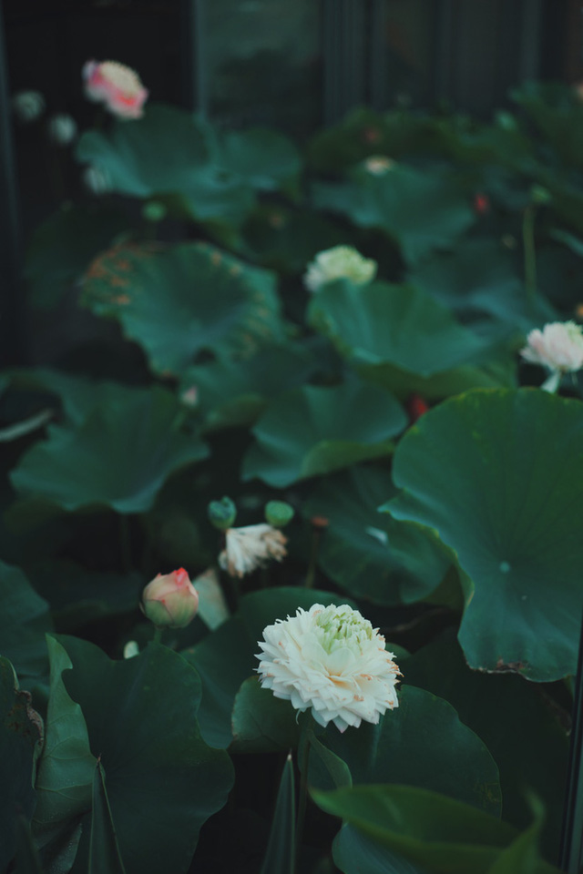 Sen được anh chị trồng rất nhiều loại, như thiên tuế, Pagoda… Trước đây anh Tùng sẽ lên mạng tìm những loại rất hiếm, đặt về và trồng bằng củ, hoặc là vào các hội yêu sen súng để tìm hiểu về các loại giống mới. Khó khăn nhất của việc trồng sen là mùa đông hoa sẽ lụi tàn. Lúc đó thì sẽ phải dọn hồ để thay hoa súng vào và khâu này có thể tự cắt, vứt bỏ hết thân và lá.
