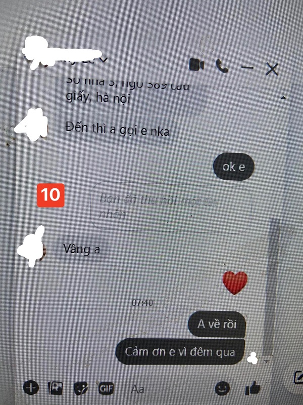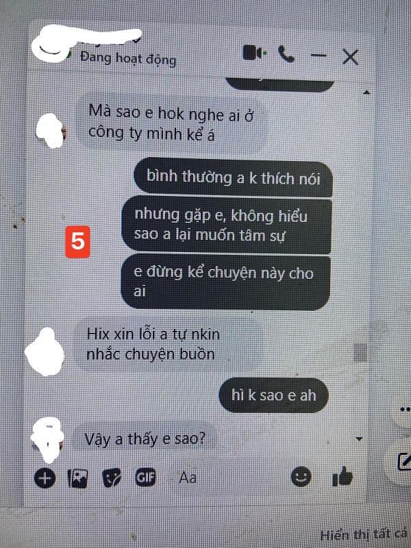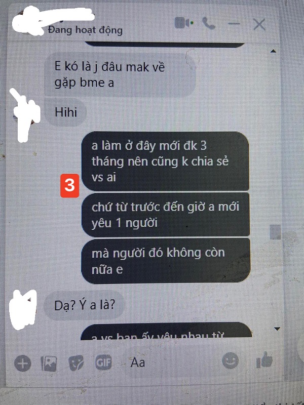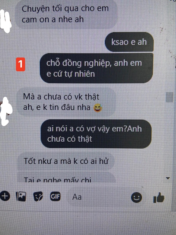Đợt này con đã được 1 tháng, tôi có thời gian để làm thêm nên nhận việc làm online. Khi mở laptop chung của 2 vợ chồng, tôi thấy facebook của anh vẫn đang đăng nhập nên tò mò vào xem thử. Không ngờ lại đọc được những tin nhắn này. Có lẽ lâu nay, chồng tôi vẫn nói dối đồng nghiệp mới rằng mình chưa có vợ để tiện bề tiếp cận người khác. Đau lòng nhất là tối qua chồng tôi đến với cô gái kia, anh nói mình bị đau đầu nên đi ngủ sớm, còn dặn tôi đừng gọi điện làm phiền. Bây giờ gặp chuyện như vậy, tôi không biết nên làm gì, chẳng lẽ lại ôm con đi tìm chồng để hỏi cho ra lẽ? Mọi người cho tôi xin lời khuyên với."