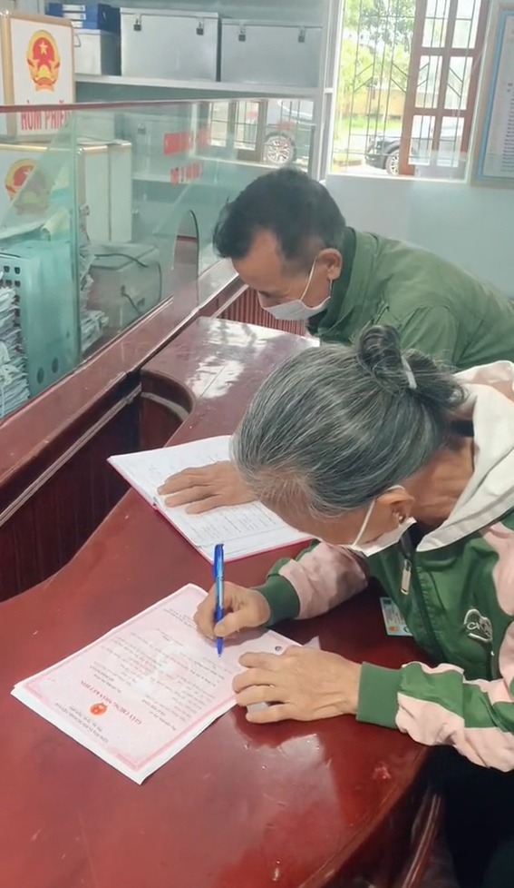 Tại phòng tư pháp, bàn tay chai sần của ông nắn nót ký tên vào tờ giấy đăng ký kết hôn. Bà cũng ngồi chăm chú nhìn từng nét bút của ông rồi ký vào phần tên của mình.
