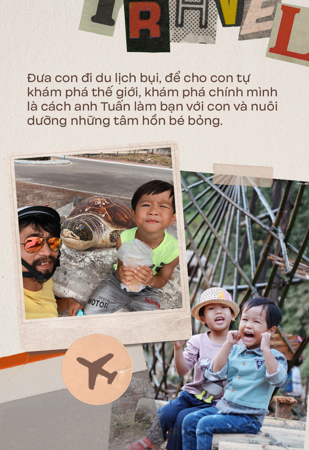 Để chuẩn bị cho con kỹ năng sống, khám phá bản thân, khám phá thế giới, anh Tuấn chọn cách đưa con đi khắp nơi du lịch “bụi”, trải nghiệm thiên nhiên trong trạng thái thuần khiết. Trong những chuyến đi ấy, anh chính người đồng hành với con.