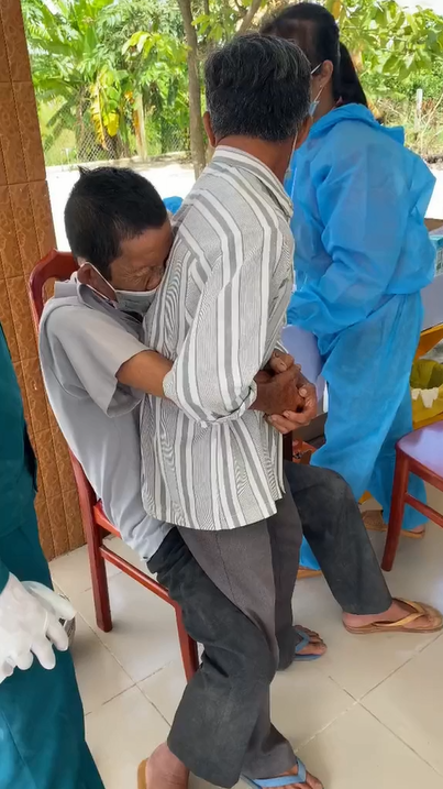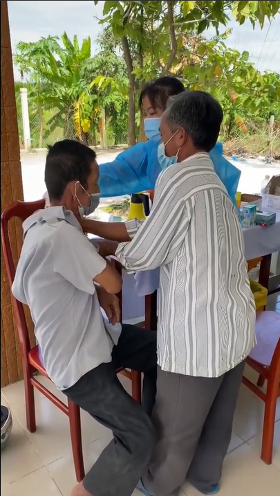 Cụ thể, tại một điểm tiêm vắc-xin phòng Covid 19, ông chú trong video "nhăn nhó" sợ hãi ôm lấy một chú khác lúc nhân viên y tế chuẩn bị tiêm. Mãi cho đến khi tiêm xong, chú mới "can đảm" buông tay ra.
