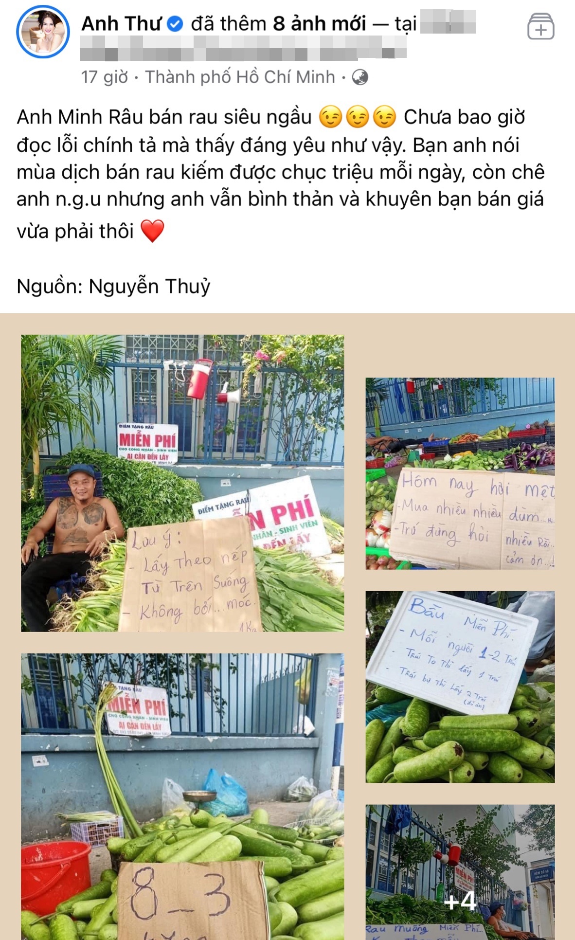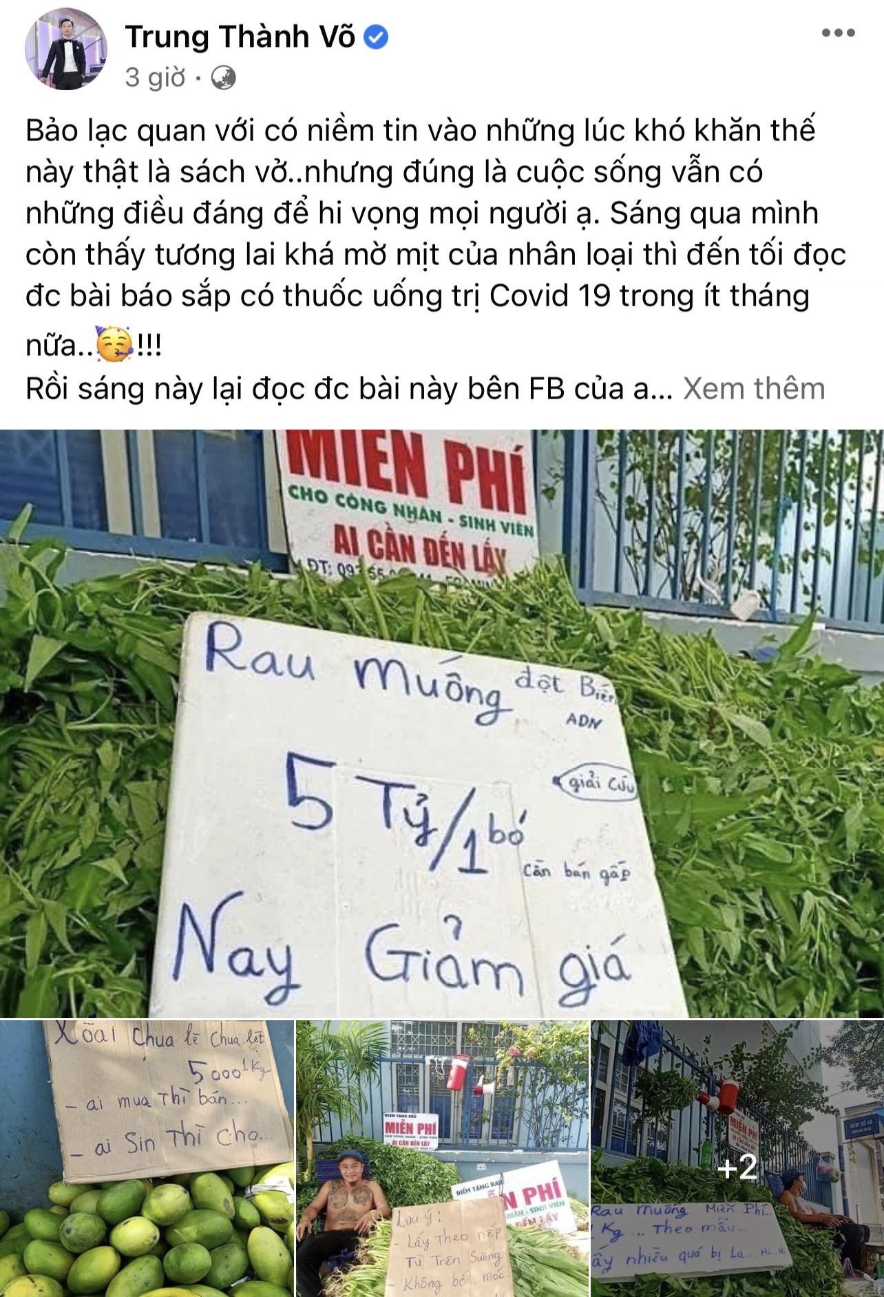 Thời điểm dịch bệnh thế này, một người bán hàng như anh quá quý hiếm. Được biết anh ấy thường trích 10 - 30 % lợi nhuận trong ngày để mua hàng miễn phí cho công nhân, sinh viên và người có thu nhập thấp.