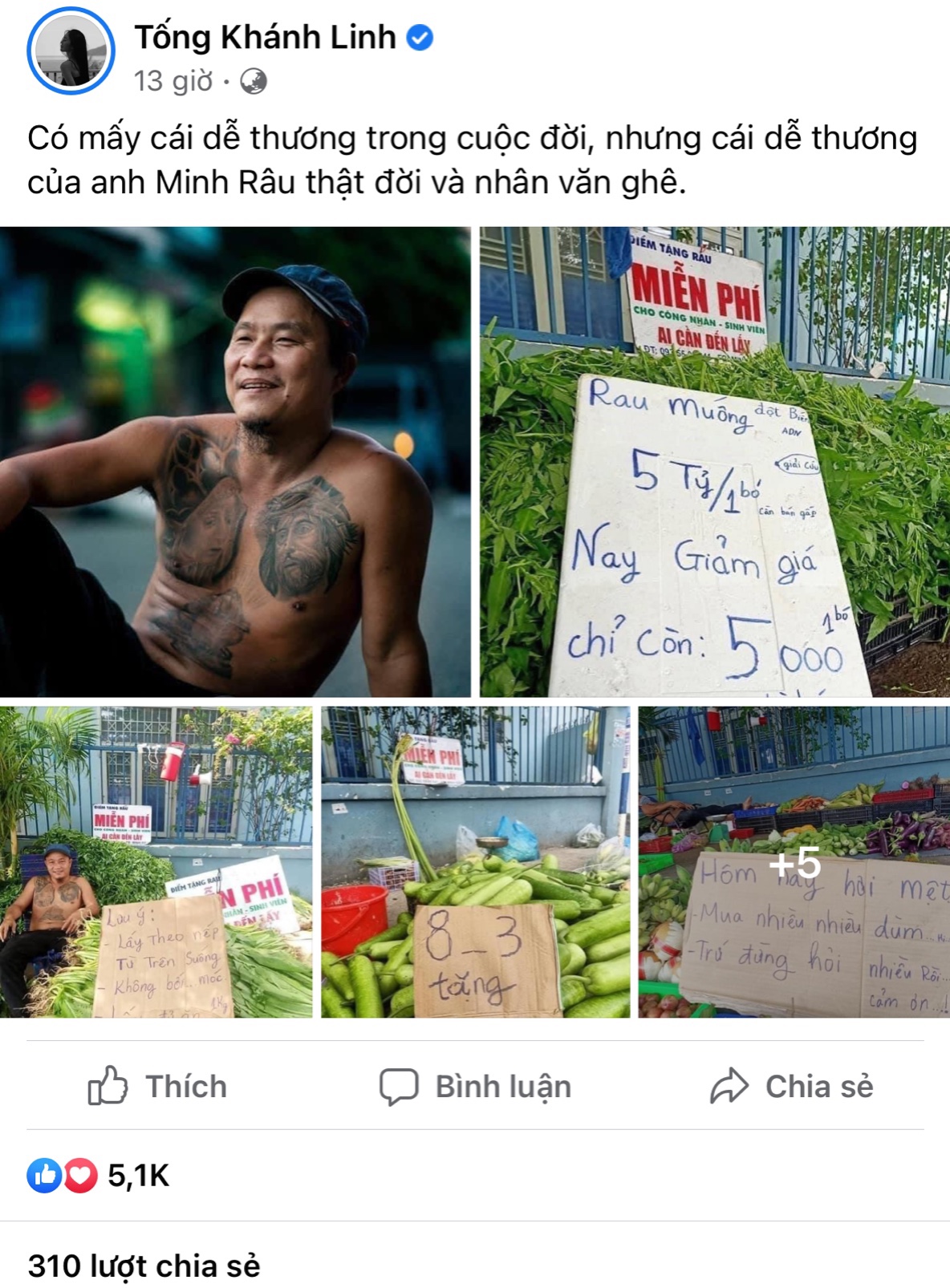 17/07/2021 21:40Ông chủ sạp rau Minh Râu được dân mạng khen rần rần những ngày qua, nay được hàng loạt người nổi tiếng chia sẻ về sự tử tế