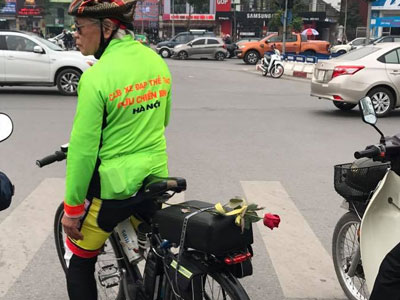 Hình ảnh người đàn ông cao tuổi đi xe đạp thể thao, chở phía sau một bông hồng khiến nhiều người xúc động trong ngày lễ Tình nhân 14/02.