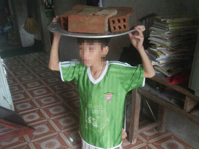 Chị gái phạt em trai đứng đội 10 viên gạch suốt 3 giờ đồng hồ